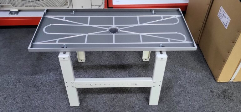 Idealnym rozwiązaniem jest komplet stelaż pod pompę ciepła wraz z tacą skroplin: